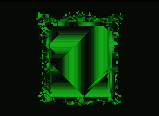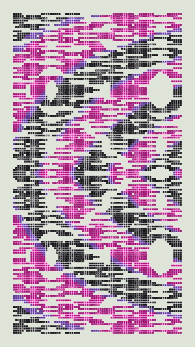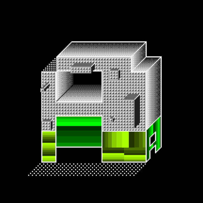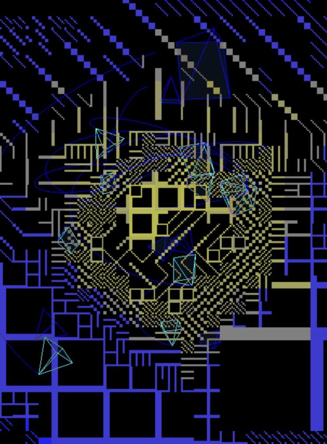 Kerim SafaとKristen Roosの協作による《ARCHITYPES》は、文字・建築・計算機史を横断する視覚実験。特徴であるカラーサイクリングは、初期コンピュータグラフィックスにおいて炎、水、光のきらめきを表現するために広く用いられてきた、固定されたカラーパレット内で色値を高速に循環させることで静止したピクセルに運動の錯覚を与えるという技法。文字はもはや可読性のための記号ではなく、構造体として組み上げられ、色の循環によって脈動し、発光する環境を形成する。その視覚効果により、初期アーケードゲームやデモシーンに見られた画面全体の運動エネルギーを想起させつつ、タイポグラフィを空間的・時間的な存在へと変換する。記号・技術・時間の層を重ね合わせることで、視覚文化の深層にある反復と振動の原理を可視化する作品。