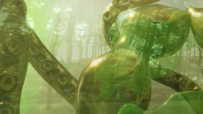Libby Heaneyによる《Qlimates》は、量子コンピューティングを用いて映像と音響を生成的に加工し、量子技術がもたらしうる未来の気候シナリオを描く映像作品。リビー・ヒーニーは5量子ビットの量子もつれパターンに着想を得て、レイヤー状に変容するビジュアルとサウンドを制作し、量子的な非線形時間を美学として提示した。複数の可能世界が重ね合わされた不穏かつ美しい映像表現によって、過去・現在・未来が交錯する複雑な時間のレイヤーを提示し、テクノロジーと環境の新たな関係性を示唆する。
