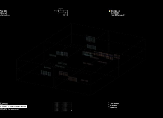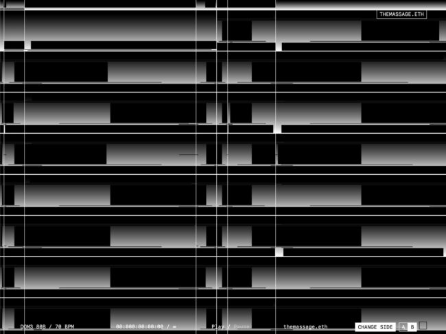 Leander HerzogとMilian Moriの協働による《DOM3》は、ブラウザ空間における視覚と音響の生成実験を探求する作品。HTML+CSS+JavaScriptのみで構築されたブラウザ作品《DOM》シリーズの第三弾であり、アルゴリズム生成されたサウンドスケープにリアルタイムで反応するヴィジュアルを特徴とする。例えば、画面上にはピクセルで描かれた抽象パターンが絶えず変化し、それが内蔵された音楽ループのスペクトラムとシンクロする。コレクターには作品中の「Side A」と「Side B」という2種類の構成を切り替える権利が与えられており、これはLPレコードを裏返すような感覚で作品の表情を変える仕掛けがある。DOM3は2025年ワルシャワのギャラリーでもインスタレーション展示され、来場者は没入型の映像音響体験を味わった。デジタルメディアを素材と捉え、アナログ的体験を取り入れたDOM3は、作品・鑑賞者・プラットフォームの三者が創り出す「トライアングル(Triality)の美学」を実現した作品と言える。