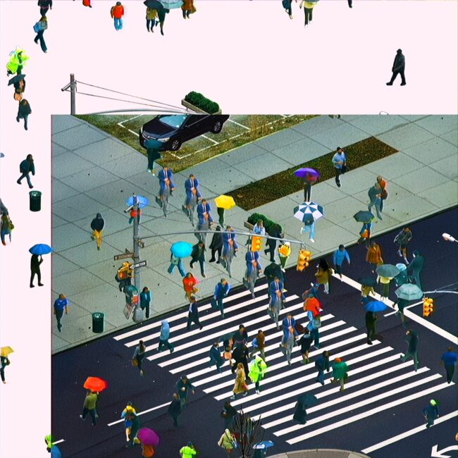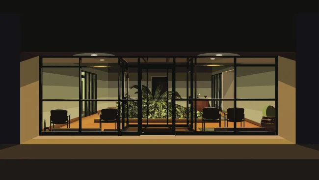 Rafaël Rozendaalによる《Rooms》の主題は、空間の生成である。 Rozendaalは長年、最小限の要素で空間性を醸成することを探求してきたが、Roomsでは単純な線の速度や動きの変化を通じて、平面的な画面に奥行きや環境感を想起させる視覚効果を作り出した。線が異なるスピードで動くことによって、鑑賞者の視覚は「平面」と「空間」のあいだを揺れ動き、抽象的な環境が感覚的に立ち現れる。Rozendaalは作品を「解釈のための指示セット」として捉え、固定されたオブジェクトではなく、どのデバイスや解像度でも同様に機能するよう設計している。これは、スクリーンをキャンバスと見なし、モダニズム絵画の形式的探究をコードというメディアに置き換える試みである。広いスクリーンでは水平に広がるフォルムが風景のように、スマートフォンでは垂直方向の動きがエレベーターのように、視覚的環境が鑑賞装置によって変容する仕掛けとなっている。