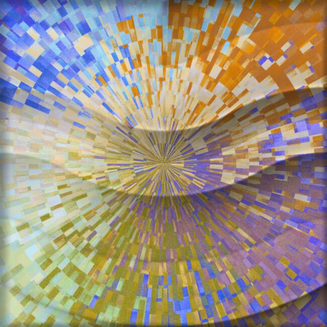 Spøgelsesmaskinenの《Loop Theory》は、64×64ピクセルの極小ディスプレイ空間に数学的螺旋の動態を封じ込めたシリーズ作品。Pythonによる生成コードを用い、さまざまな螺旋パターンがアニメーション化されており、それぞれが自然界に潜む「神聖幾何学」の法則性を象徴する。ミニマルなピクセル表現ながら、黄金螺旋など古典的形態がデジタル空間で振動する様は、古代の普遍的秩序と現代のアルゴリズム的秩序の交差を想起させる。自由奔放な幾何学の詩を、制約あるピクセルグリッドで表現することにより、デジタル技術がもつ無限性と神秘性とを静かに描き出した。