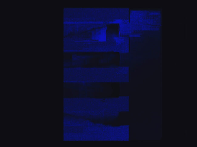 RENKI YAMASAKIによる《Untitled》は、ドナルド・ジャッドの《Untitled》作品群に着想を得て制作された映像作品。ジャッドが数多く制作してきたサイトスペシフィックな立体作品の寸法体系を参照し、それらをデジタル空間内で再生成することから出発している。ジャッドが追求したのは、物体そのものが持つ物理的なスケールと、空間との直接的な関係性であったが、本作ではその寸法論理がコンピュータ上の座標系へと移植される。画面内で生成される形態は、一定の秩序を保ちながらも揺らぎや破綻を孕み、固定された立体ではなく、変化し続ける空間体験として提示される。この操作によって、ミニマリズムの彫刻的思考とデジタル表現の時間性を接続し、空間を知覚する行為そのものを問い直す試みとなっている。ちなみに本作は単体で完結する作品ではなく、100点以上から成るシリーズの一部として位置づけられている。